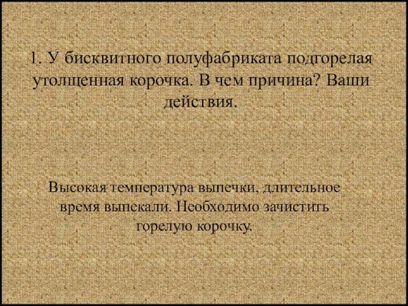 Высокая температура выпечки, длительное время выпекали. Необходимо зачистить горелую корочку.