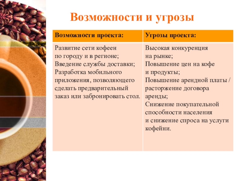 Риск изменения тенденций и отказ от употребления кофейных напитков. Этот риск минимален. Однако, даже в этом случае вы всегда можете сосредоточить внимание на приготовлении алкогольных напитков.