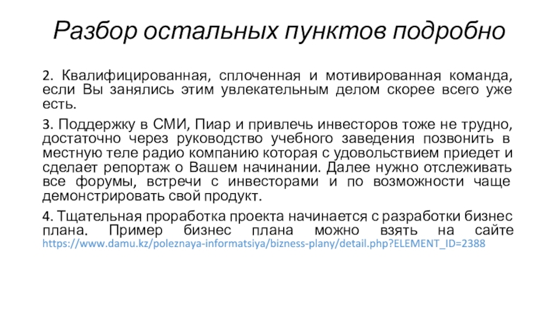 4. Тщательная проработка проекта начинается с разработки бизнес плана. Пример бизнес плана можно взять на сайте https://www.damu.kz/poleznaya-informatsiya/bizness-plany/detail.php?ELEMENT_ID=2388