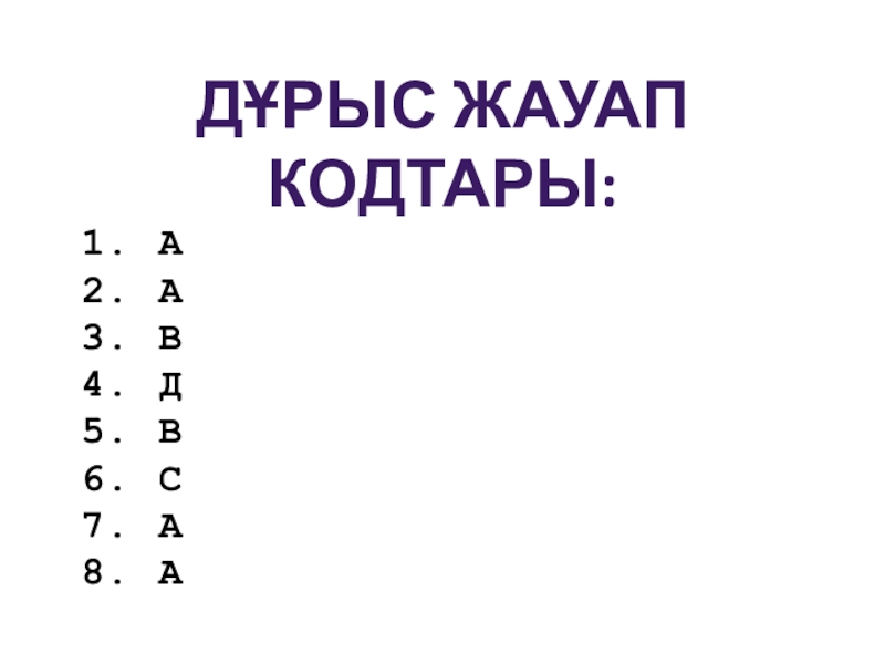 ДҰРЫС ЖАУАП КОДТАРЫ:ААВДВСАА