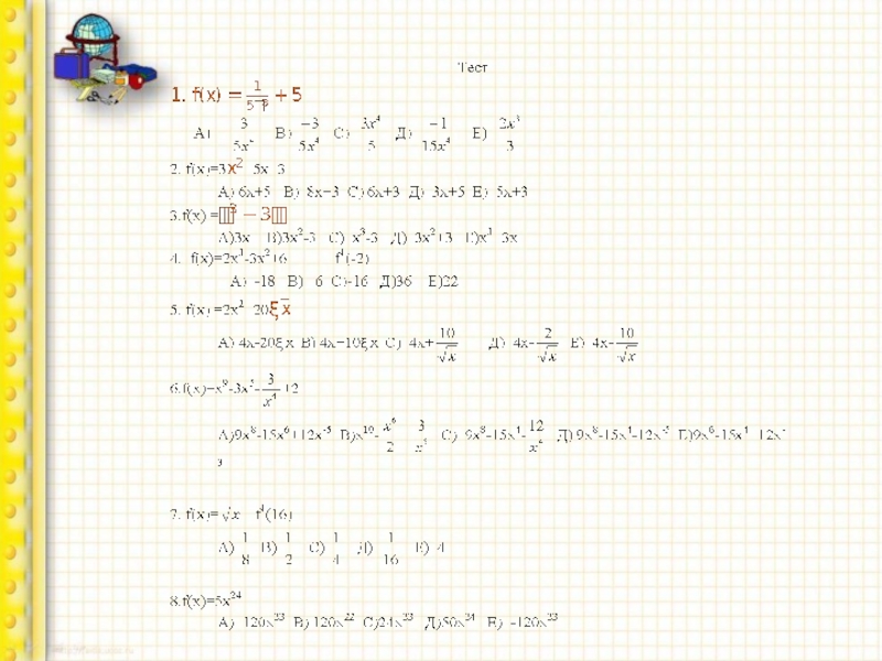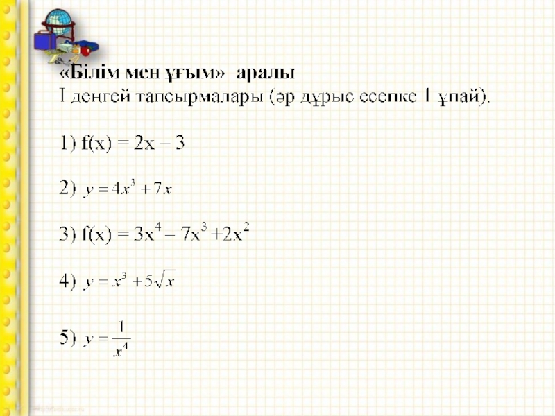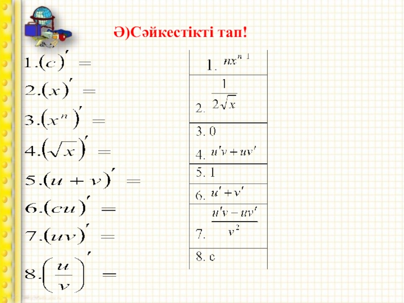 2. Функцияның туындысын табу амалы ...............................амалы деп аталады.