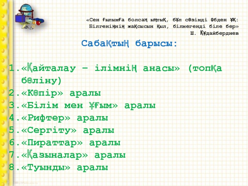 Слайд 2 «Сен ғылымға болсаң ыңтық, бұл сөзімді әбден ұқ: