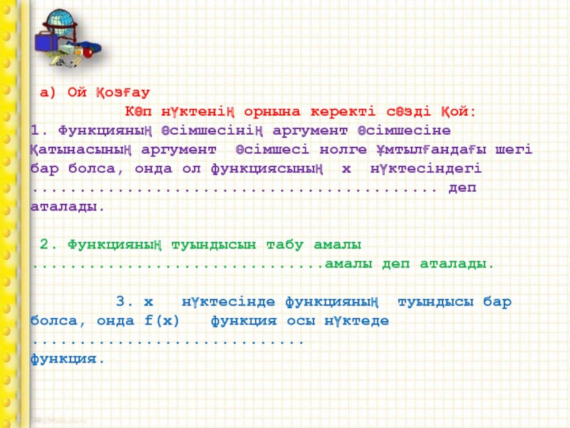 а) Ой қозғау      Көп нүктенің орнына керекті сөзді қой: 1. Функцияның