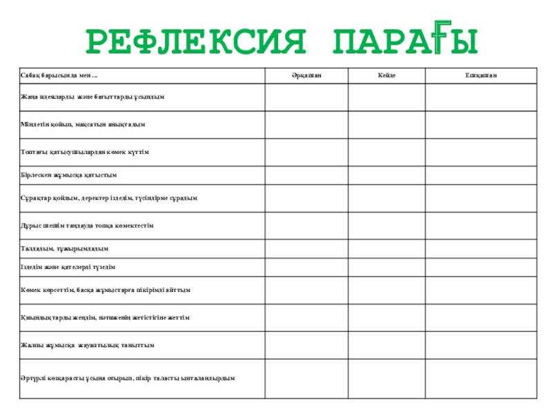 Слайд 26РЕФЛЕКСИЯ ПАРАҒЫ