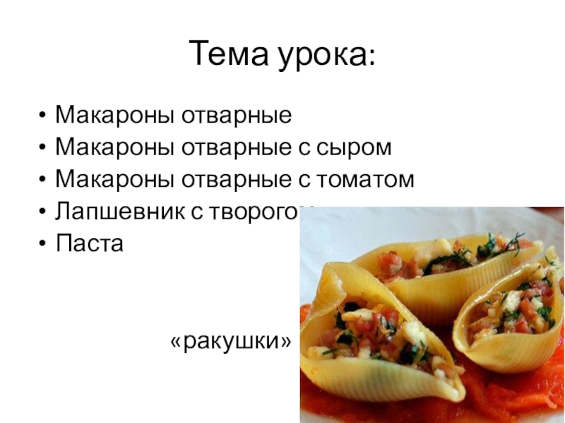 02.4.2 тема программы: «Приготовление блюд из макаронных изделий»