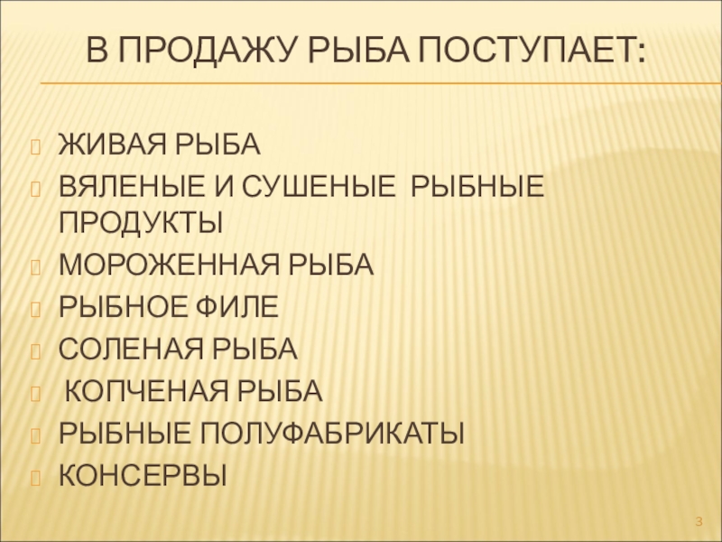 Слайд 3В ПРОДАЖУ РЫБА ПОСТУПАЕТ: