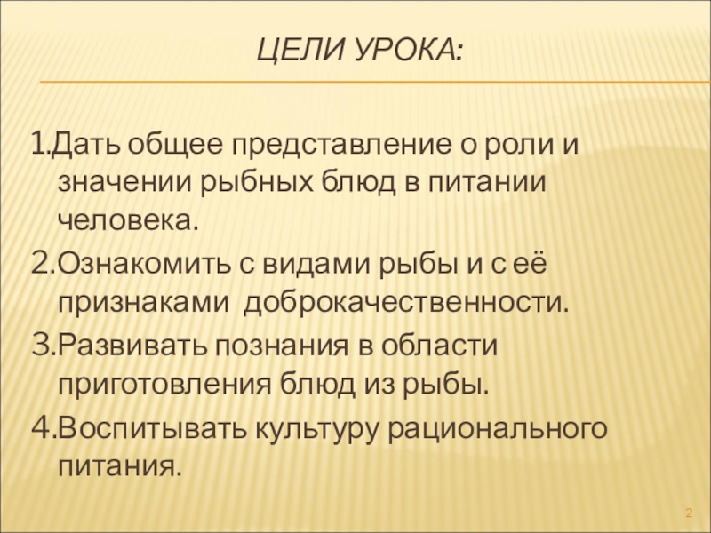 2.Ознакомить с видами рыбы и с её признаками доброкачественности.