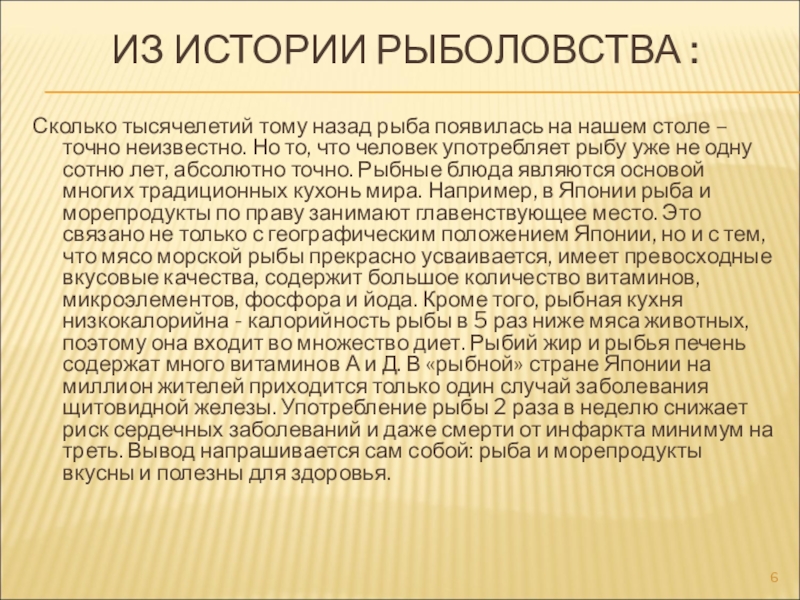 Слайд 6ИЗ ИСТОРИИ РЫБОЛОВСТВА :