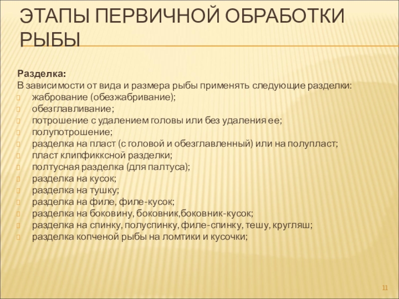 Слайд 11ЭТАПЫ ПЕРВИЧНОЙ ОБРАБОТКИ РЫБЫ