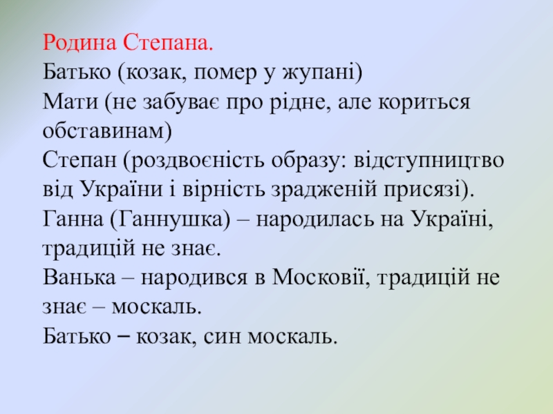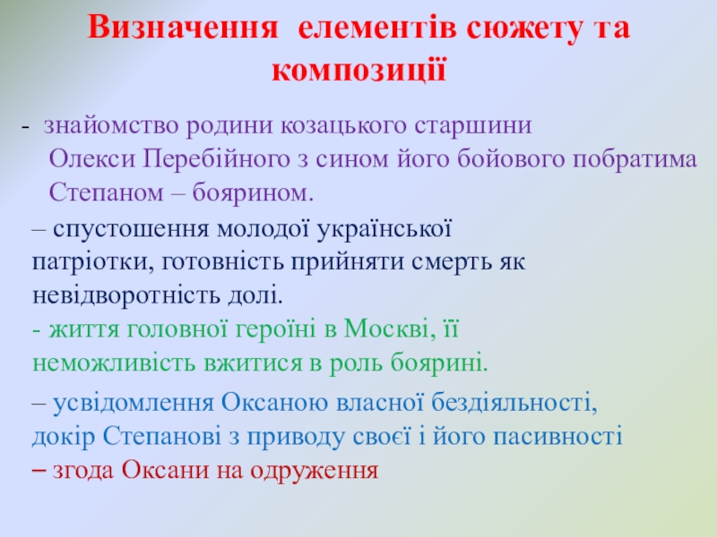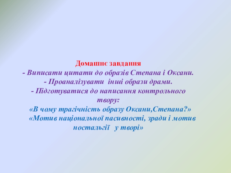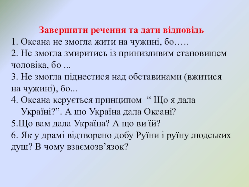 – усвідомлення Оксаною власної бездіяльності, докір Степанові з приводу своєї і його пасивності