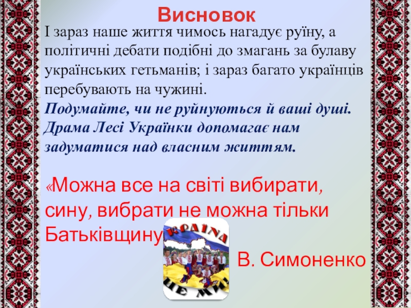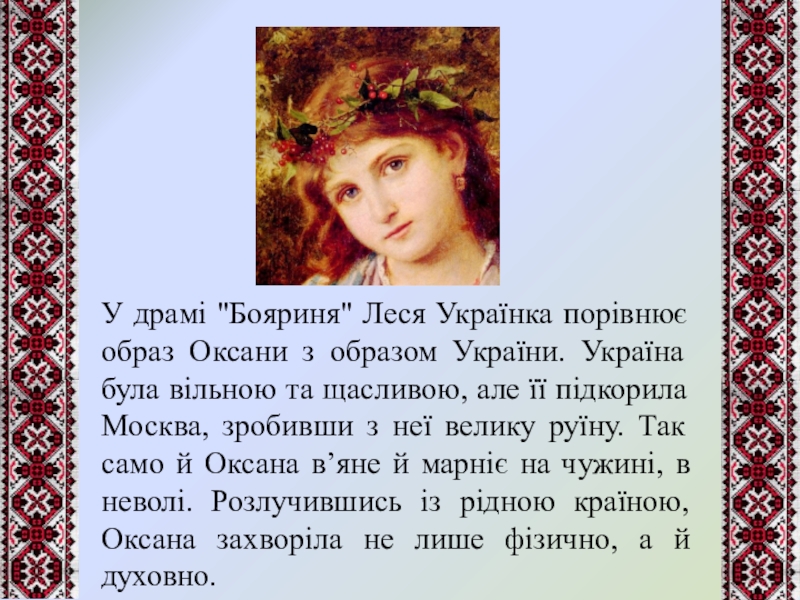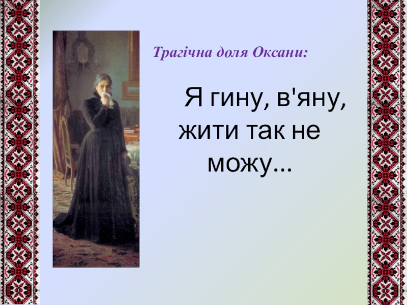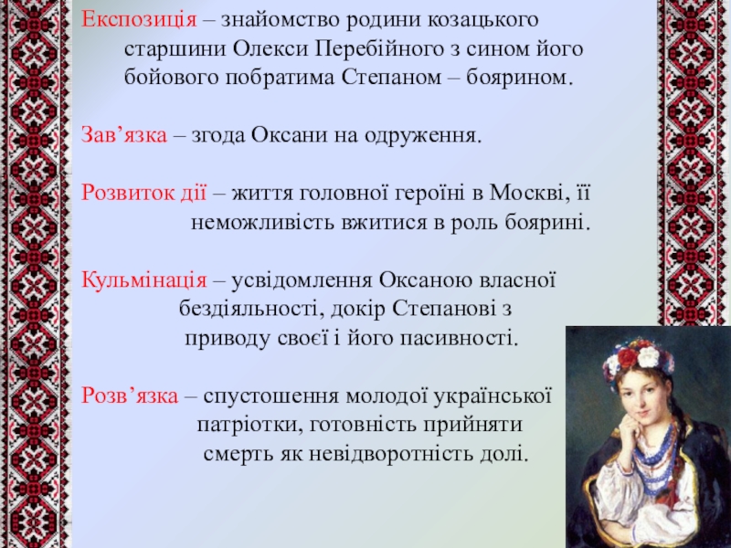 – спустошення молодої української патріотки, готовність прийняти смерть як невідворотність долі.