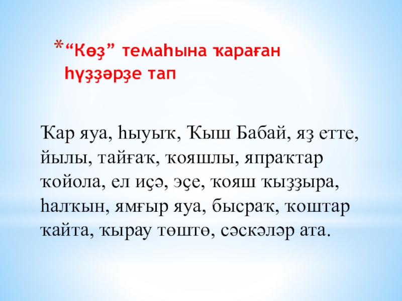 Слайд 3“Көҙ” темаһына ҡараған һүҙҙәрҙе тап