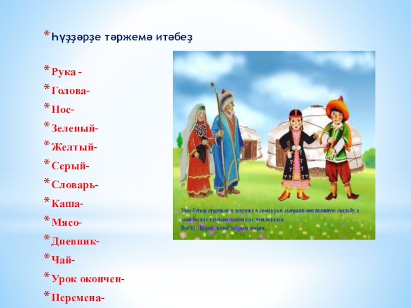 Слайд 12Һүҙҙәрҙе тәржемә итәбеҙ