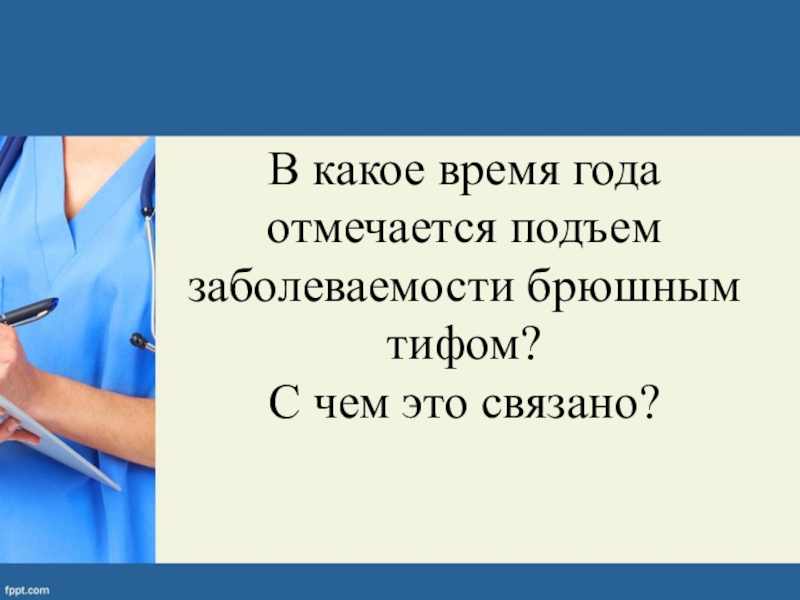 Слайд 65В какое время года отмечается подъем заболеваемости брюшным тифом?