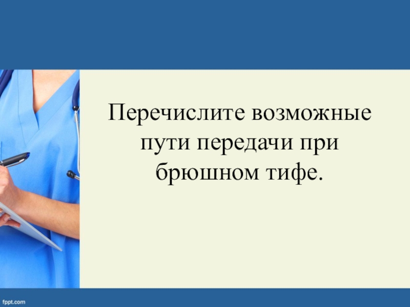 Слайд 66Перечислите возможные пути передачи при брюшном тифе.