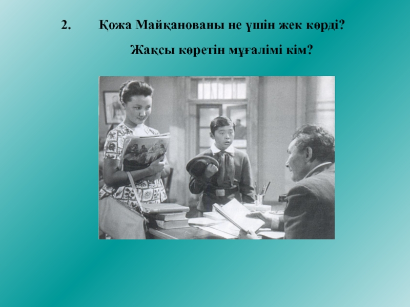 Слайд 4Қожа Майқанованы не үшін жек көрді? Жақсы көретін мұғалімі кім?