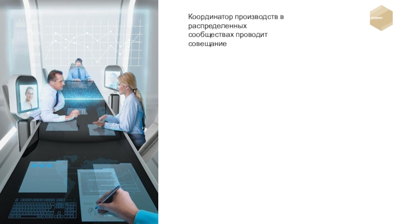 Слайд 12Координатор производств в распределенных сообществах проводит совещание