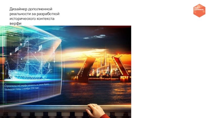 Слайд 8Дизайнер дополненной реальности за разработкой исторического контекста верфи