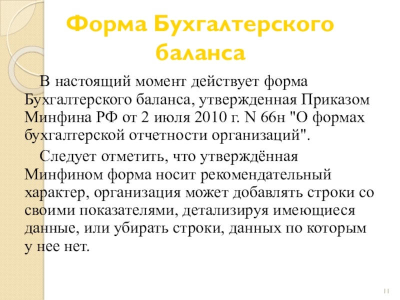 В настоящий момент действует форма Бухгалтерского баланса, утвержденная Приказом