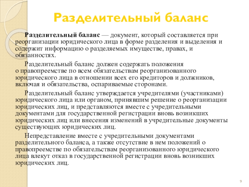 Разделительный баланс — документ, который составляется при реорганизации юридического лица в форме разделения