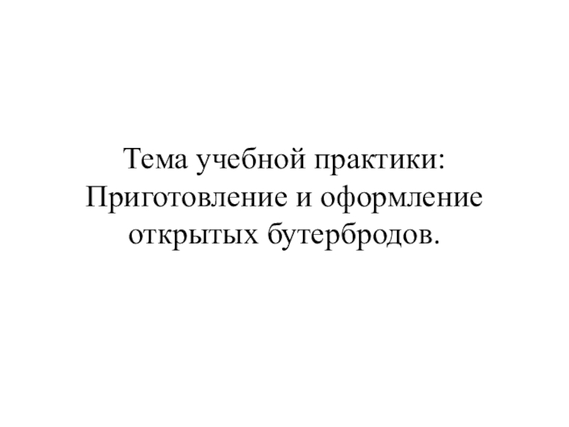 Слайд 1Тема учебной практики: Приготовление и оформление открытых бутербродов.
