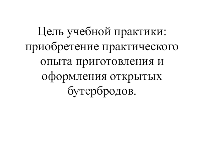 Слайд 2Цель учебной практики: приобретение практического опыта приготовления и оформления открытых бутербродов.