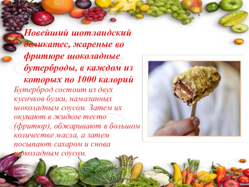 Бутерброд состоит из двух кусочков булки, намазанных шоколадным соусом. Затем их окунают в жидкое тесто (фритюр), обжаривают в большом количестве масла, а затем посыпают сахаром и снова шоколадным соусом.