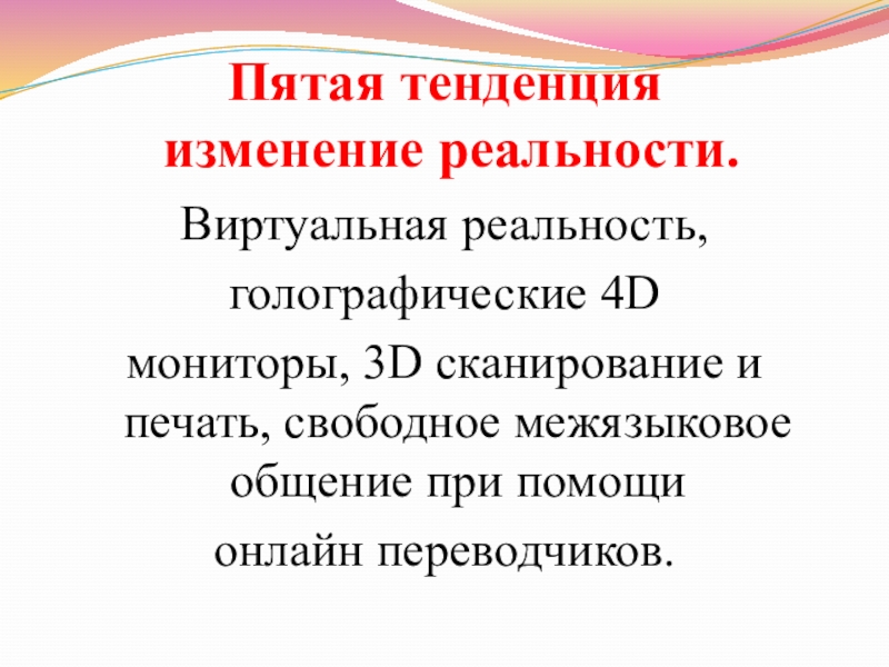 Слайд 7Пятая тенденция изменение реальности.