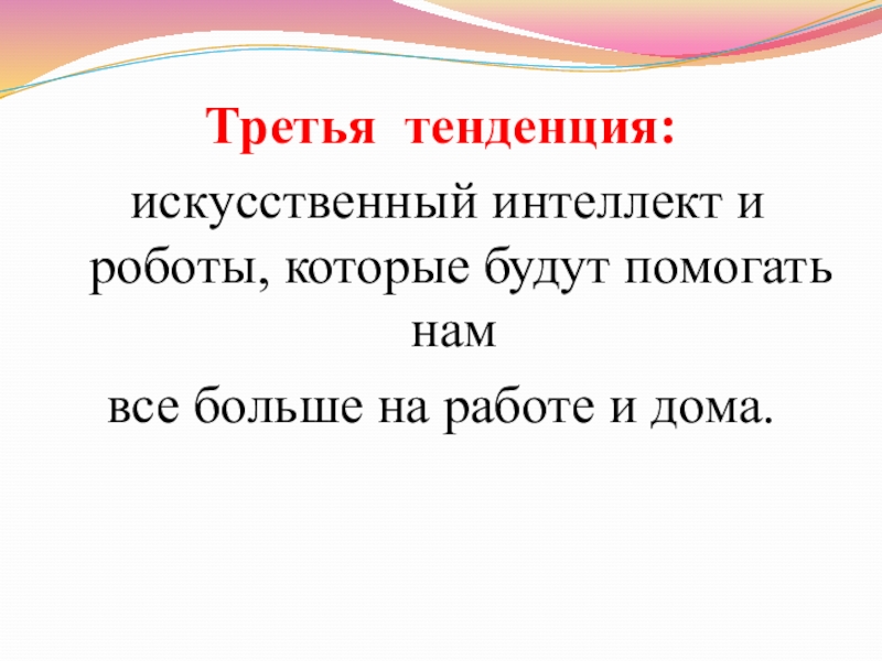 Третья тенденция: искусственный интеллект и роботы, которые будут помогать нам все больше на работе и дома.