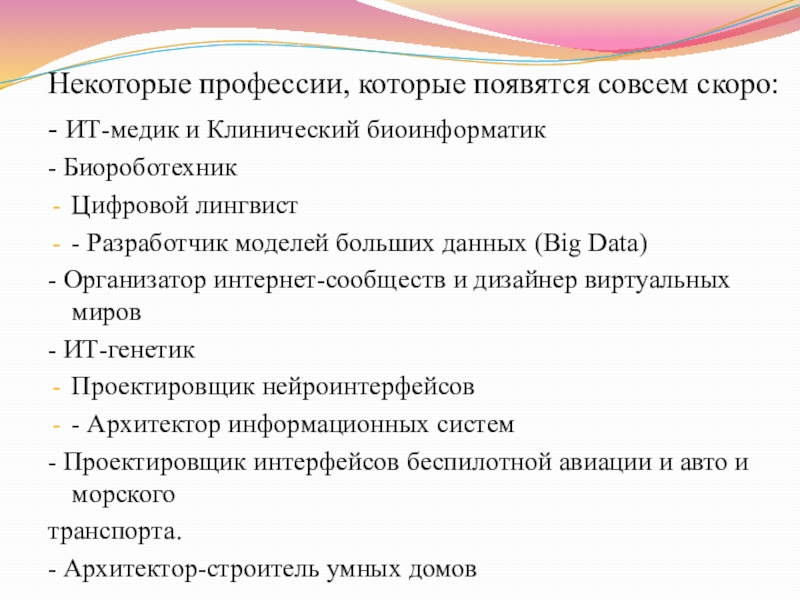 Слайд 8Некоторые профессии, которые появятся совсем скоро: