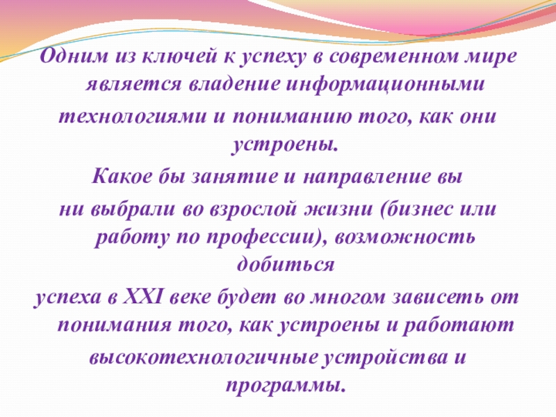 Одним из ключей к успеху в современном мире является владение информационными технологиями и пониманию того, как они