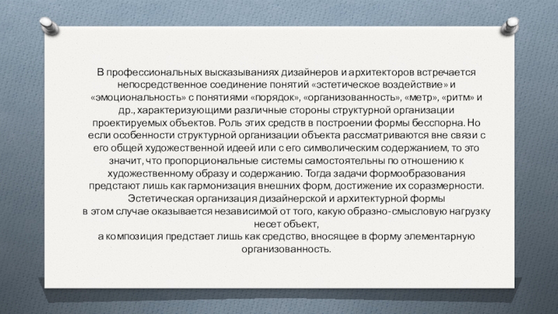 Слайд 5В профессиональных высказываниях дизайнеров и архитекторов встречается непосредственное соединение понятий «эстетическое