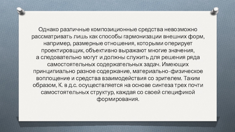 Слайд 6Однако различные композиционные средства невозможно рассматривать лишь как способы гармонизации внешних