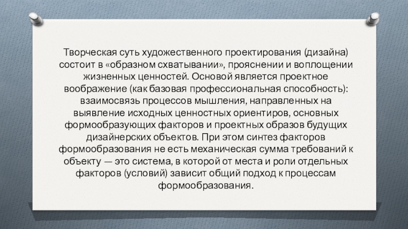 Слайд 8Творческая суть художественного проектирования (дизайна) состоит в «образном схватывании», прояснении и
