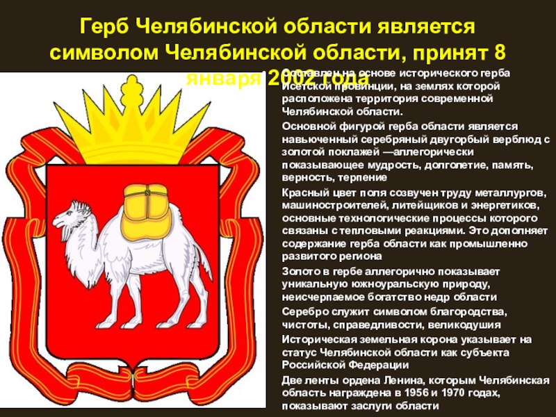 Историческая земельная корона указывает на статус Челябинской области как субъекта Российской Федерации