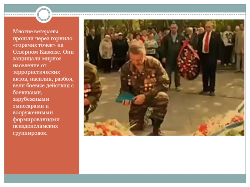 Слайд 3Многие ветераны прошли через горнило «горячих точек» на Северном Кавказе. Они