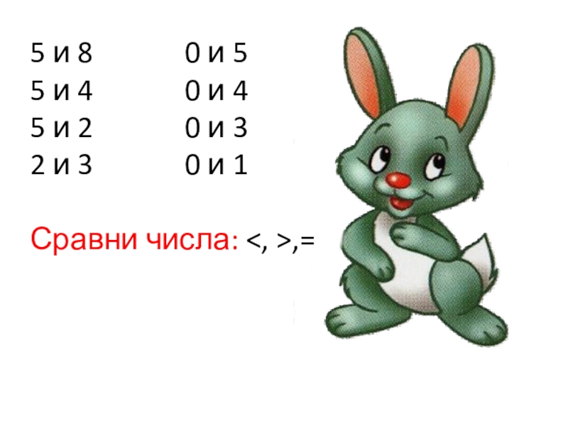 5 5 и 4 0 и 4 5 и 2 0 и 3 2 и 3 0 и 1 Сравни числа: <, >,=