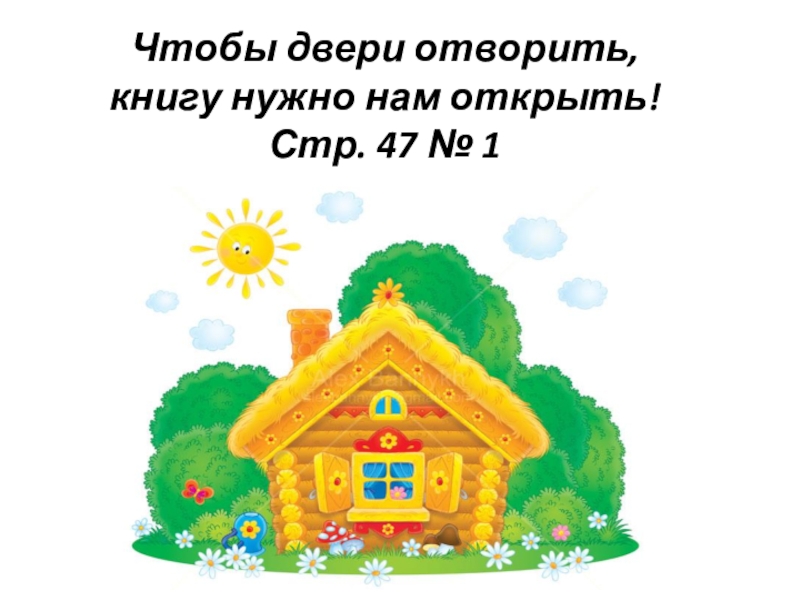 Слайд 3Чтобы двери отворить, книгу нужно нам открыть! Стр. 47 № 1