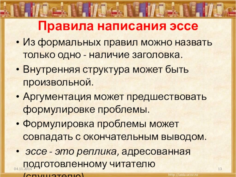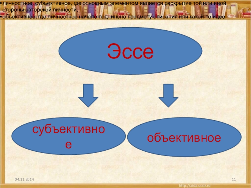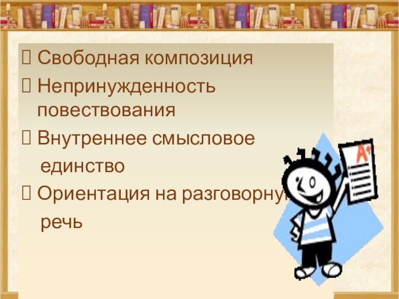 Прозаическое сочинение небольшого объема и свободной композиции на частную тему, трактуемую субъективно и обычно неполно.