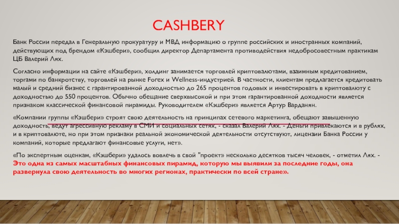 Определите, является ли Cashbery финансовой пирамидой? Ответ обоснуйте!