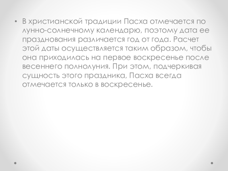 Слайд 3В христианской традиции Пасха отмечается по лунно-солнечному календарю, поэтому дата ее