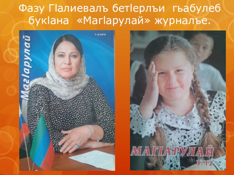 Слайд 9Фазу Гlалиевалъ бетlерлъи гьабулеб букlана «Магlарулай» журналъе.