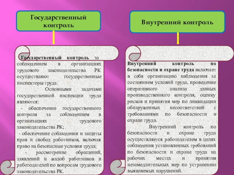 Внутренний контроль по безопасности и охране труда включает в себя организацию наблюдения за состоянием условий труда, проведение оперативного анализа данных производственного контроля, оценку рисков и принятия мер по ликвидации обнаруженных несоответствий с требованиями по безопасности и охране труда.