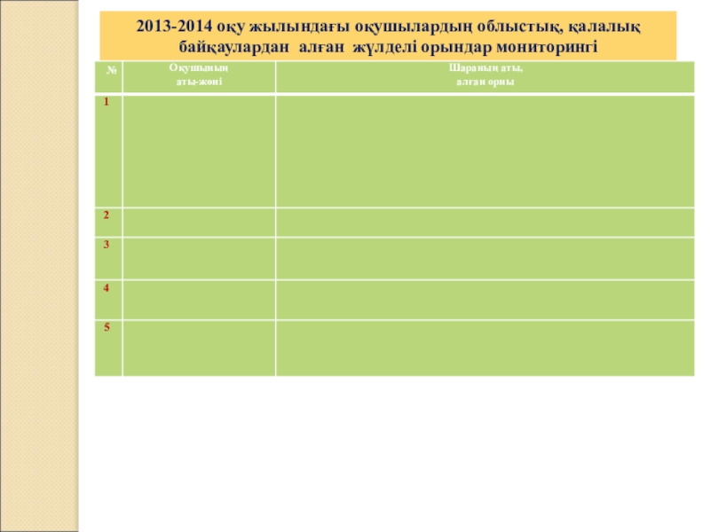 Слайд 162013-2014 оқу жылындағы оқушылардың облыстық, қалалық байқаулардан алған жүлделі орындар мониторингі