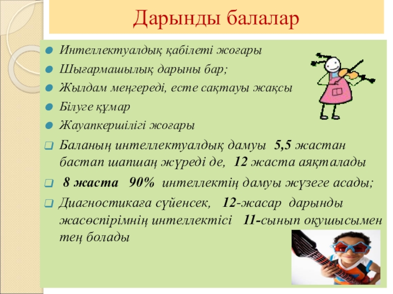 Диагностикаға сүйенсек, 12-жасар дарынды жасөспірімнің интеллектісі 11-сынып оқушысымен тең болады