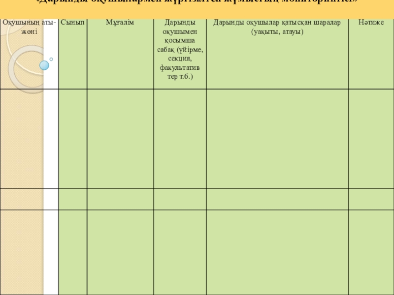 «Дарынды оқушылармен жүргізілген жүмыстың мониторингісі»