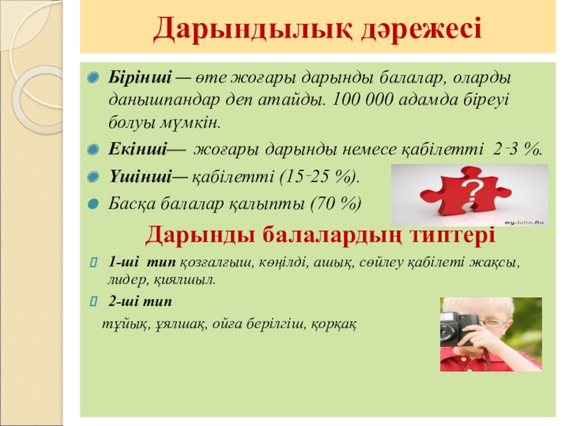 Екінші— жоғары дарынды немесе қабілетті 2‑3 %.