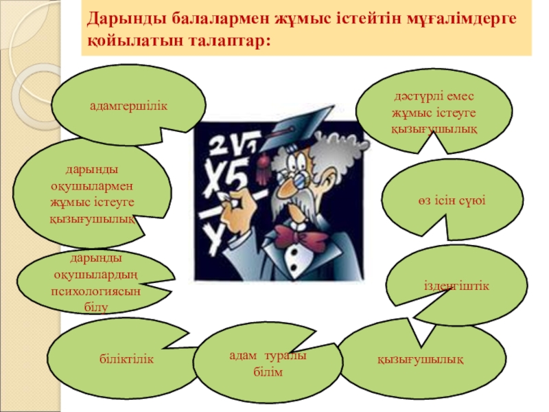 Слайд 13Дарынды балалармен жұмыс істейтін мұғалімдерге қойылатын талаптар: