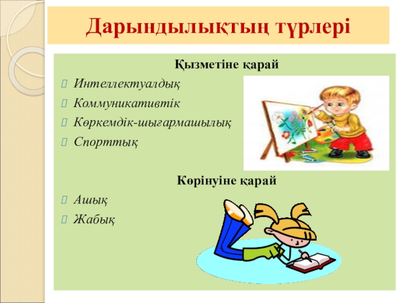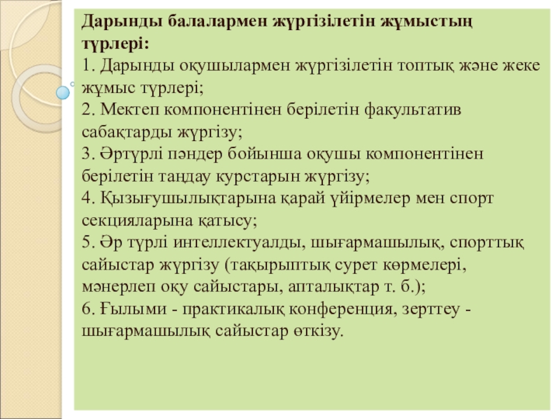 Дарынды балалармен жүргізілетін жұмыстың түрлері: