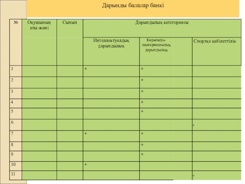 банкін жасау (интеллектуалдық, шығармашылық, спорттық, коммуникативтік қабілеттері бойынша)